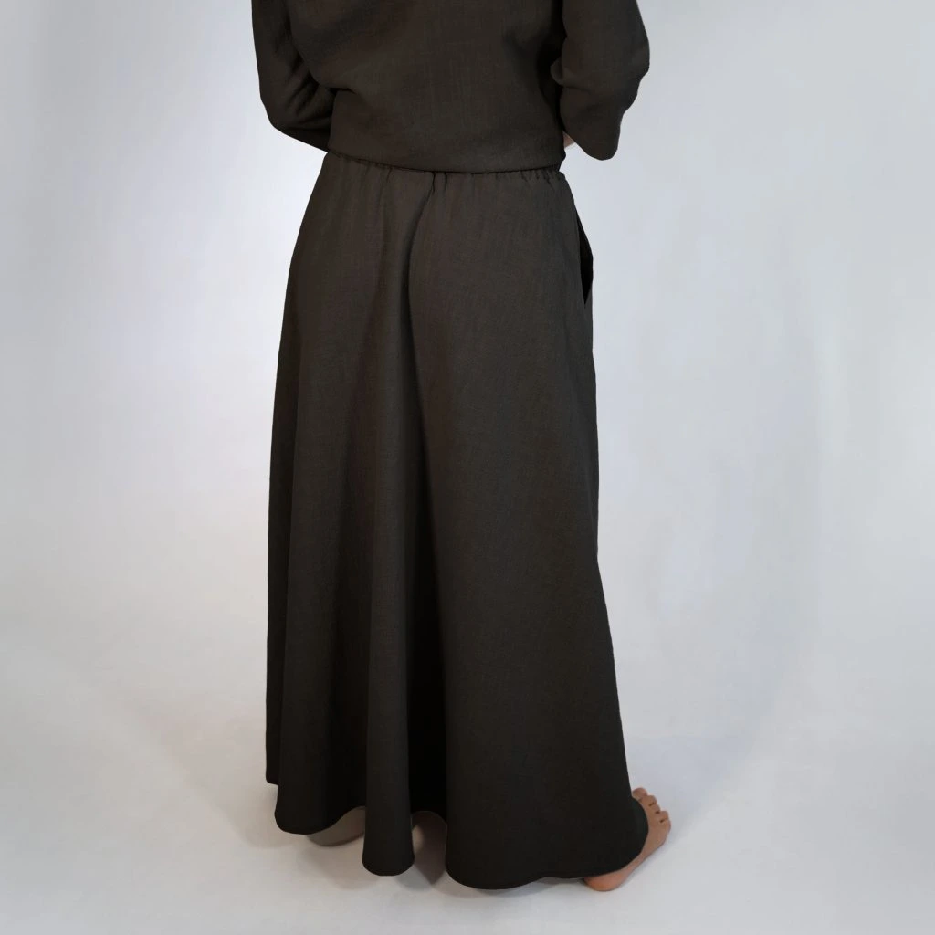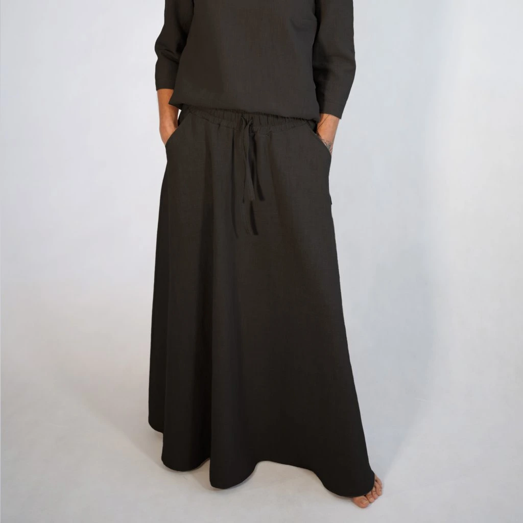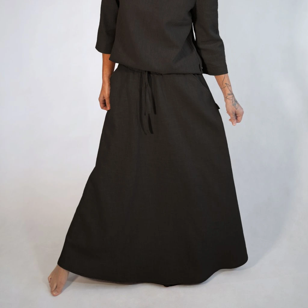Každú sukňu šijeme v našej lokálnej dielni s dôrazom na detaily, ktoré vydržia sezóny. Zmes 80 % ľanu a 20 % bavlny je ideálnou voľbou – ľan prináša prirodzený chlad a antibakteriálne vlastnosti, bavlna dodáva jemnosť, ktorú oceníte pri celodennom nosení.