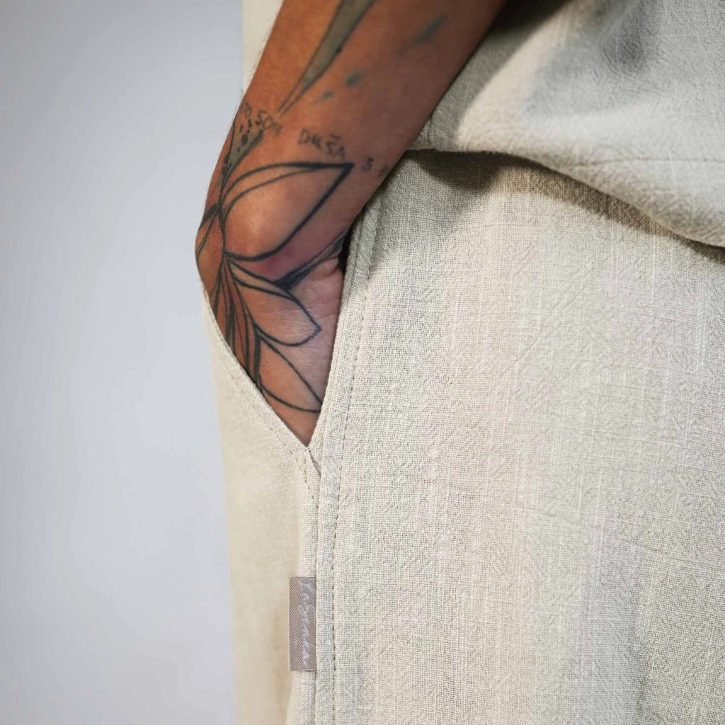 - Materiál: 80 % Ľan, 20 % Bavlna. Táto kombinácia je zárukou priedušnosti, odolnosti a jemnosti. Nohavice sú príjemné na pokožke a s každým praním budú len a len lepšie.