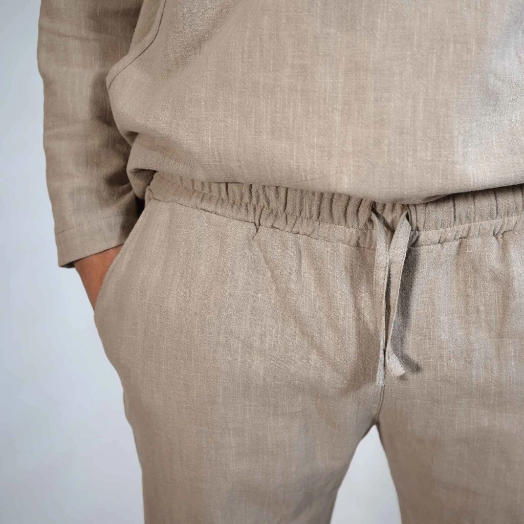 Zmes ľanu a bavlny (80/20) dodáva nohaviciam tú správnu štruktúru – vyzerajú prémiovo, ale zachovávajú si prirodzenú vzdušnosť a ľahkosť.
