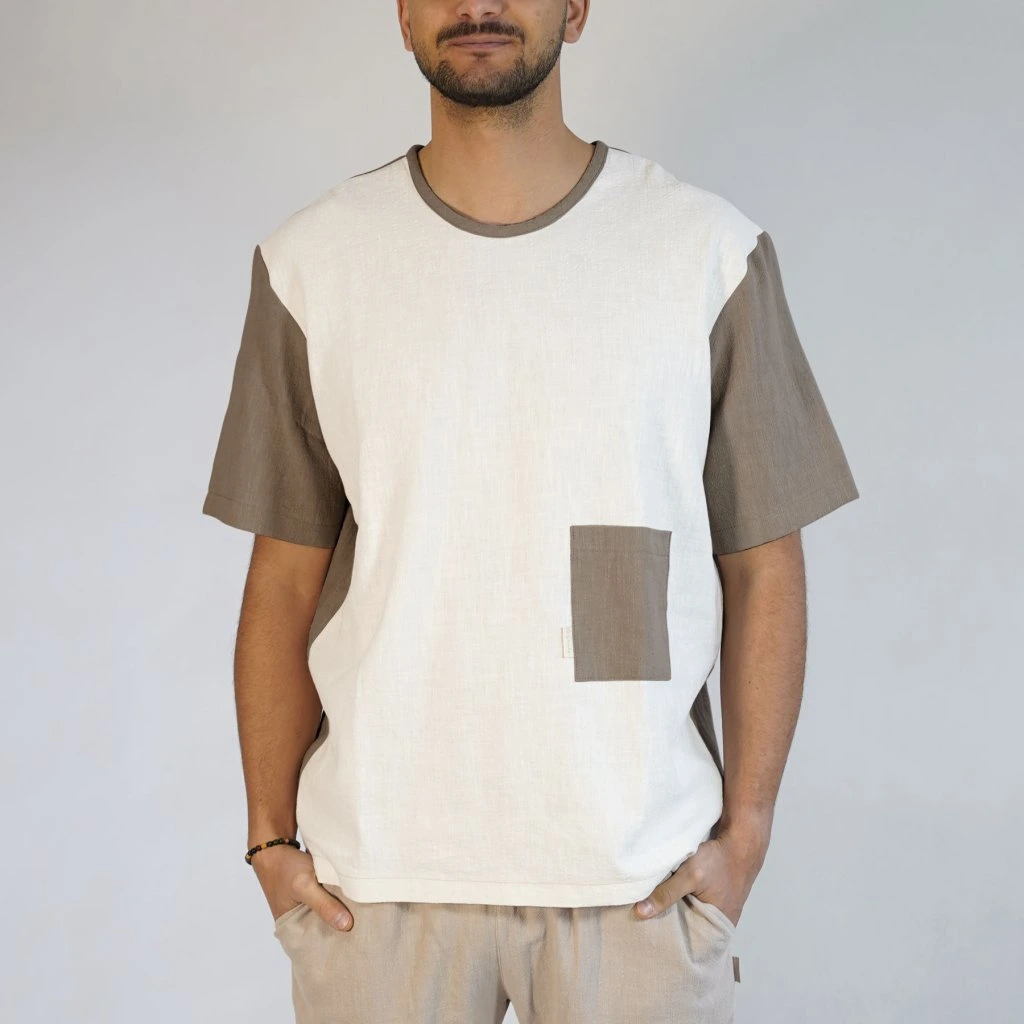 - Netradičné vrecko: Vrecko sme umiestnili zámerne nižšie, ako je zvykom. Je to drobný, no originálny detail, vďaka ktorému tričko nepôsobí nudne a má svoj vlastný šmrnc.