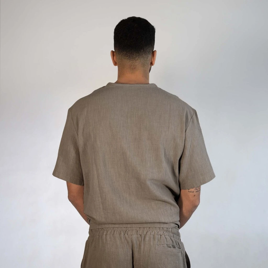 Ľanové tričko MONTE - desert taupe/white