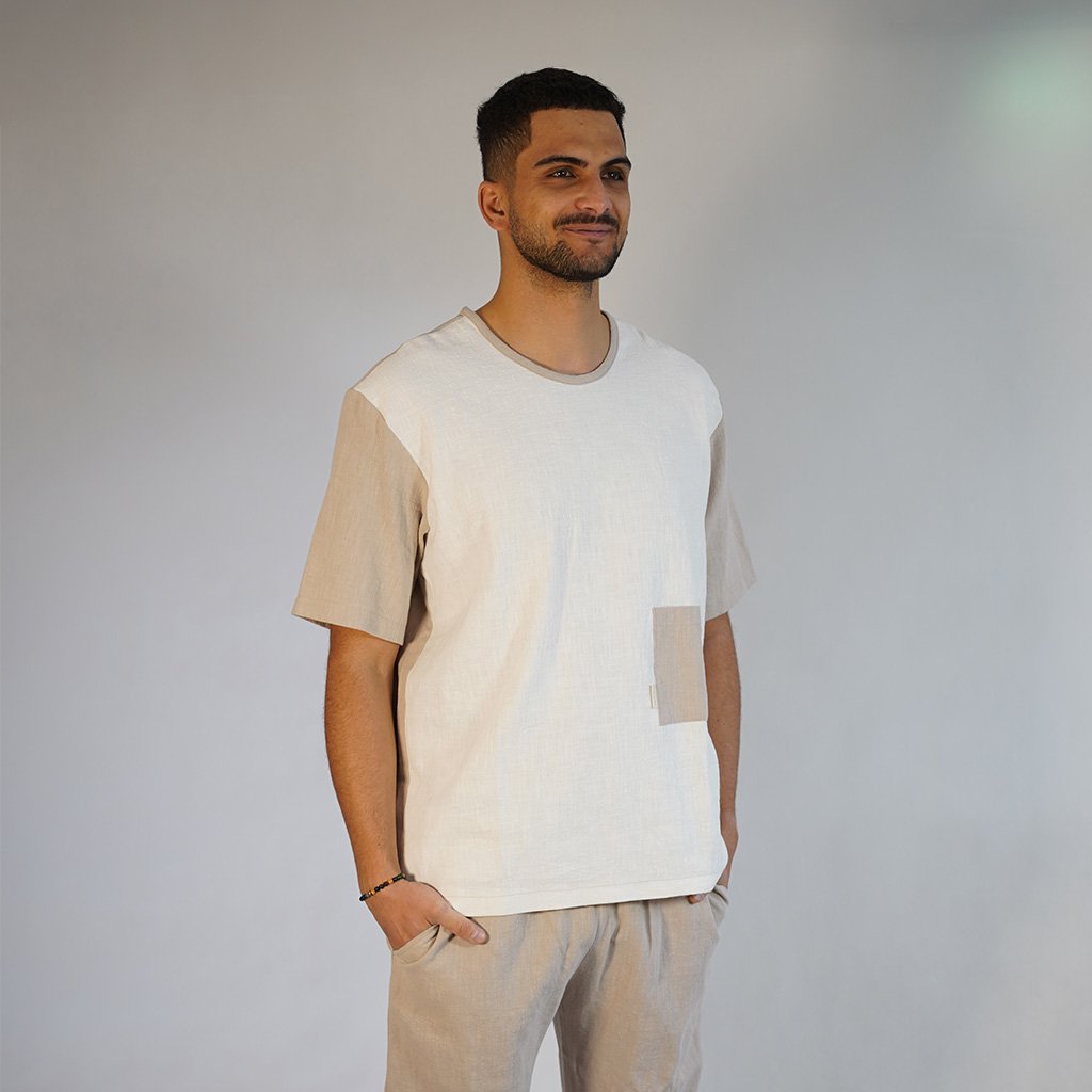 Ľanové tričko MONTE - natural/white
