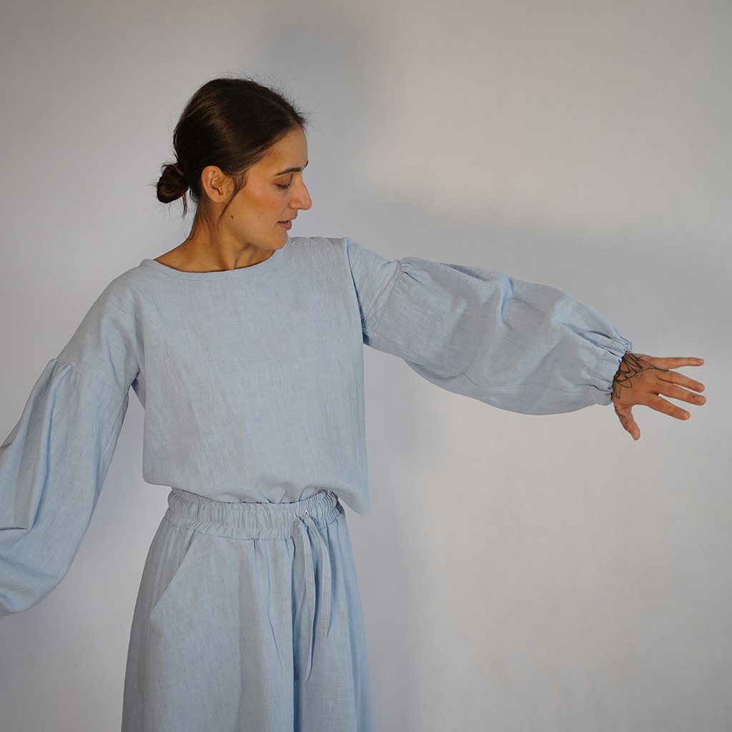 Názov VELIA evokuje ľahkosť, vánok a ten jemný závoj, ktorý vytvára ranná hmla nad lúkou. Toto tričko je navrhnuté, aby vám dodalo pocit éterickosti a ženskosti, no zároveň ostalo verné nášmu záväzku k udržateľnej a pohodlnej móde. Dlhé naberané rukávy dodávajú tričku šmrnc a robia ho výnimočným.